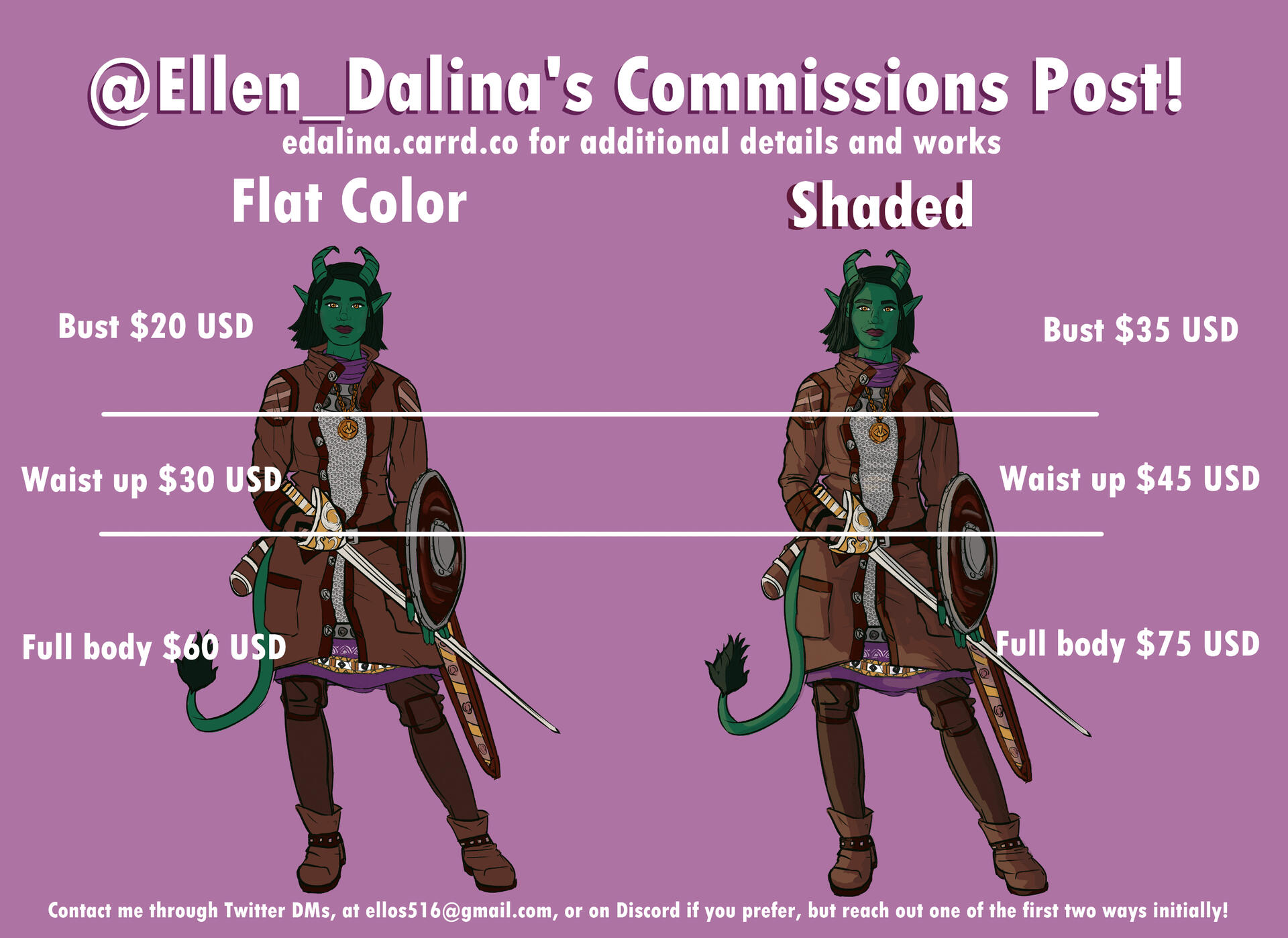 Message me on Twitter, through email, or on Discord (but pick one of the first two to reach out if we're not already friends!) through an icon below!